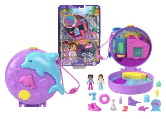 Ten uroczy zestaw kompaktowy Polly Pocket™ Akwarium Delfina na zewnątrz jest ozdobiony motywem delfinków i ma element do naciskania. Po otwarciu odsłania centrum ratowania zwierzątek, 2 mikrolalki i 12 akcesoriów, w tym figurki zwierzaczków morskich. Lalka Shani uwielbia podziwiać rybki obracające się w akwarium. Wybierz się na przejażdżkę z ośmiornicą lub „pływaj” na fali z otworami do przyczepienia. Dzięki obracającemu się teleskopowi możesz poszukać stworzeń żyjących w morzu, a rozkładane drzwi ukazują akwarium. Po skończonej zabawie złóż zestaw i zabierz go, gdziekolwiek chcesz. Świetny prezent dla dzieci w wieku od 4 lat, zwłaszcza tych, które uwielbiają opiekę nad zwierzątkami. Kolory i elementy dekoracyjne mogą się różnić. Płetwastycznie Zestaw kompaktowy Polly Pocket™ Akwarium Delfina zawiera dwie mikrolalki i 12 akcesoriów, w tym figurki zwierzątek morskich.