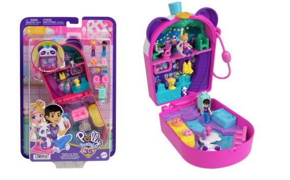 Polly Pocket Bubble tea pandy Zestaw kompaktowy z 2 mikrolalkami, figurką pandy i akcesoriami „jedzeniowymi”, przenośna zabawka Ten przesłodki zestaw kompaktowy Polly Pocket® Bubble tea pandy ma kształt napoju z kuleczkami, które ruszają się po potrząśnięciu. Po otwarciu odsłania sklepik z bubble tea, 2 mikrolalki i 12 akcesoriów, w tym małą figurkę pandy. Lalka Polly™ uwielbia przygotowywać herbatkę dla przyjaciół na specjalnym stanowisku. Usiądź, odpręż się i sącz „napój” na huśtawce, która rusza się w przód i w tył. „Oglądaj seriale” z uroczą pandą na przytulnej kanapie – stolik przekształca się w telewizor. To idealne miejsce na spotkanie z przyjaciółmi. Po skończonej zabawie złóż zestaw i zabierz go, gdziekolwiek chcesz. Wspaniały prezent dla dzieci od 4 roku życia, zwłaszcza tych, które uwielbiają pandę i herbatkę. Kolory i elementy dekoracyjne mogą się różnić.