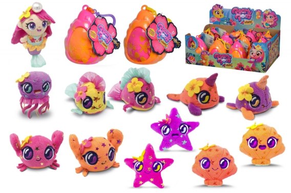 • Pluszowe, błyszczące stworzenia morskie żyją w swoich muszlach i mogą wyjrzeć przez przesuwane drzwi - możesz zabrać swojego morskiego przyjaciela ze sobą w muszelce, dzięki praktycznej zawieszce.