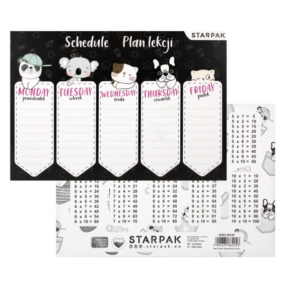 Plan lekcji z tabliczką mnożenia A5 Minisy STARPAK 494188