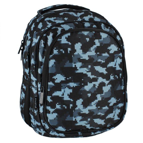 Zalety produktu: plecak składa się z 1 dużej komory i 2 obszernych przednich kieszeni, w środku komór znajdują się organizery, 2 boczne wzmocnione kieszenie siatkowe na butelkę z napojem, wytrzymałe zamki błyskawiczne, ergonomiczne plecy i szelki ,plecy z systemem wentylacji dla większego komfortu, grube, miękkie szelki chronią ramiona, regulowane szelki pozwalają dopasować plecak do wzrostu i budowy ciała, uchwyt w środku usztywniony, pozwalając zawiesić plecak na wieszaku lub wygodnie nosić go w ręce. Plecak w czarno-popielato-grafitowej kolorystyce. Wygodny i funkcjonalny plecak szkolny STARPAK z młodzieżową grafiką z serii Moro. Użytkowanie takiego plecaka to czysta przyjemność. Zapoznaj się również z innymi produktami STARPAK dedykowanymi młodzieży Wykonany z trwałego materiału. Plecak jest wyrobem tekstylnym. Przeznaczony dla dzieci w wieku: 3 . Wymiary produktu wys. x szer. x gł. cm : 43x35x21, waga produktu kg : 0,80 kg. Plecak pakowany w folię. Pakowanie w kartonie po 12 szt.