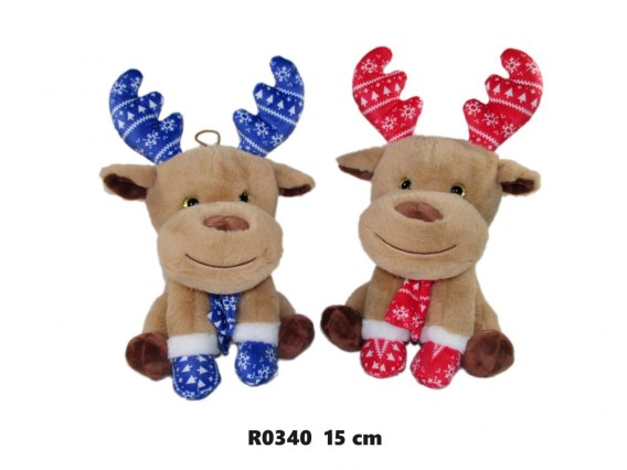 Pluszak 15 cm Renifer siedzący w szaliku SUN-DAY R0340-24