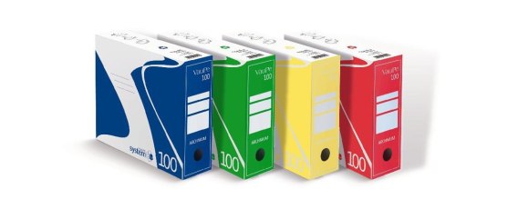 Wykonany z bezkwasowej tektury falistej fala B o wysokiej gramaturze, przeznaczony do archiwizacji zawartości segregatora lub segregatorów wraz z zawartością format A4 szerokość grzbietu 80mm 100mm, 150 mm innowacyjna gama kolorystyczna