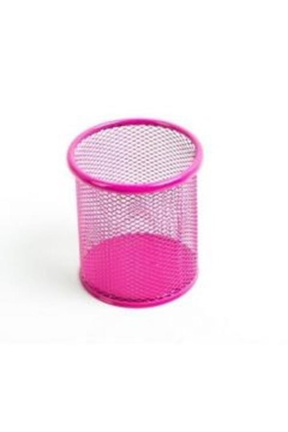Pojemnik metalowy na dłgopisy siatkowany różowy 009984
