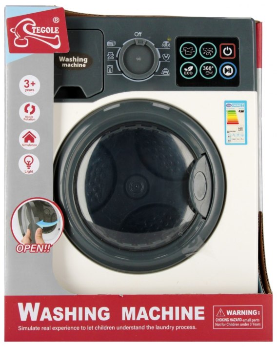 Zalety produktu: pralka posiada efekty dźwiękowe oraz świetlne, bęben pralki po włączeniu obraca się, posiada funkcje prania, płukania oraz wirowania, posiada wysuwana szufladę na proszek/płyn do prania, po skończonym praniu można je wyciągnąć ze środka, pralka w kolorze biało-szarym. Najwyższy czas aby zrobić pranie. Pozwól dziecku na wykonanie tej czynności domowej własnoręcznie we własnej pralce MEGA CREATIVE. Produkt ten idealnie odzwierciedla prawdziwy sprzęt domowy Zawartość zestawu: pralka funkcyjna. Produkt wykonany z plastiku. Wymiary/waga/baterie: wymiary produktu dł. x wys. x gł. cm : 19x25x11, wymiary opakowania dł. x wys. x gł. cm : 21x26x13, waga produktu bez opakowania kg : 0,67 kg, waga produktu w opakowaniu kg : 0,83 kg, wymaga zasilania bateriami 3 x AA LR06- nie załączono do zestawu. Zabawka przeznaczona dla dzieci w wieku: 3 . Pakowana w kartonik z otwartym okienkiem. W kartonie zbiorczym po 12 szt.