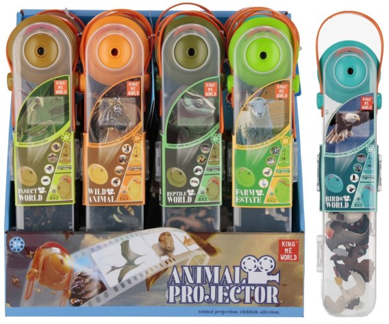 Zabawka jest prosta w obsłudze, lekka i poręczna, dzięki czemu idealnie sprawdzi się w domu, podczas podróży czy zabawy z rówieśnikami. Produkt dostępny w mixie kolorów i wzorów – wysyłanych losowo. Cechy produktu: projektor na baterie z motywem zwierząt, zestaw akcesoriów z różnymi obrazkami, rozwija wyobraźnię i ciekawość świata, łatwy w obsłudze i bezpieczny dla dzieci, atrakcyjny, kolorowy design. Produkt wykonany z plastiku. Zawartość zestawu: 1x projektor, 12x zwierzęta mix. Zestaw występuje w sześciu wariantach. Wymiary/waga/baterie: wymiary produktu dł. x wys. x gł. cm : 7x31x5, wymiar opakowania display dł. x wys. x gł. cm : 28x28x16, waga produktu bez opakowania kg : 0,24 kg, waga produktu w opakowaniu display kg : 2,41 kg, wymaga zasilania bateriami 3x AG13- załączone do zestawu. Produkt przeznaczony dla dzieci w wieku: 3 . Pakowany w plastikowym etui w banderoli, w display po 12 szt. Pakowanie w kartonie po 48/96 szt.