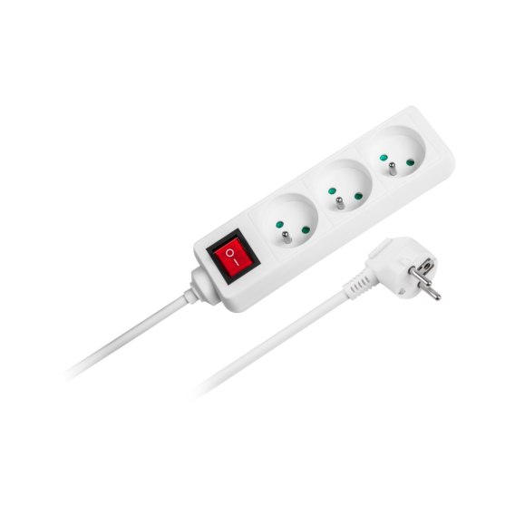 Przedłużacz biały Rebel z przełącznikiem 3 gniazda - 5m (1,5mm)
