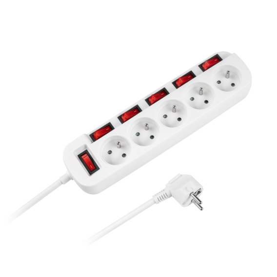 Przedłużacz sieciowy Rebel z 6 wyłacznikami 5 gniazd - 3m