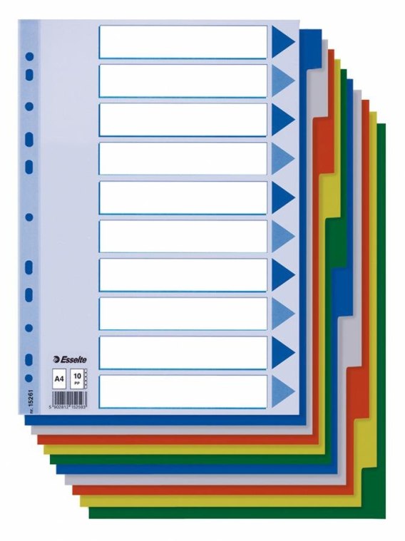 Przekładki plastikowe z PP A4 Esselte, 10 kart