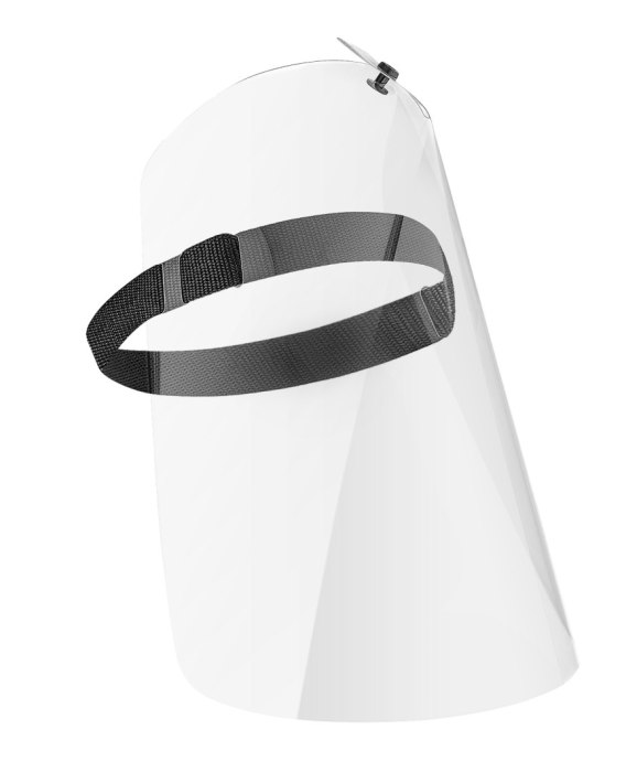 Przyłbica ochronna wykonana z wysokiej jakości elastycznego PET 0,5. Jej specjalna konstrukcja sprawia, że chroni twarz również od góry.
