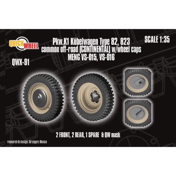 Quickwheel QWX-91 Pkw. K1 Kubelwagen Type 82, 823 Common Off-Road (Continental) w/ Wheel Caps 2 Front, 2 Rear, 1 Spare & QW Mask