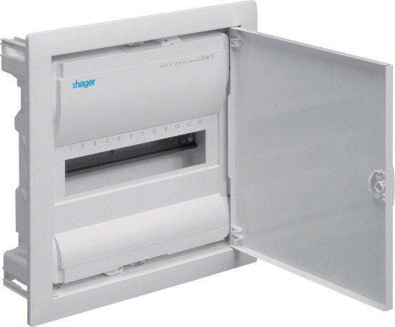 Rozdzielnica podtynkowa z drzwiami metalowymi, 1 rząd, 12 modułów, IP30, QC, HAGER Volta VU12AT