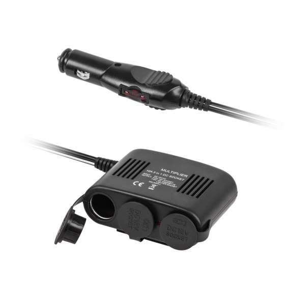 Rozgałęziacz gniazda zapalniczki Przeznaczony jest do zasilania urządzeń elektrycznych wymagających napięcia zasilania 12V DC Umożliwia jednoczesne podłączenie do zasilania trzech urządzeń Posiada wbudowany bezpiecznik Wymaga bezpiecznika 13A lub większego Maksymalny prąd dla całego rozgałęziacza 10A