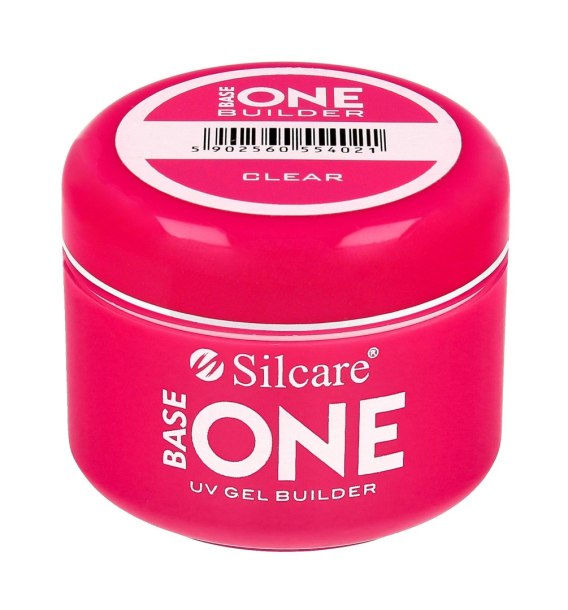 Base One Clear to żel bezbarwny, idealny do budowania paznokcia na tipsie jak i na szablonie. Bez problemów można wtapiać elementy i łączyć z innymi żelami czy akrylami. Średniogęsty, samopoziomujący - zapewnia wysoki komfort pracy. Dzięki wyeliminowaniu kwasu akrylowego uzyskano produkt o dużo korzystniejszym działaniu na płytkę paznokcia niż standardowe żele UV.