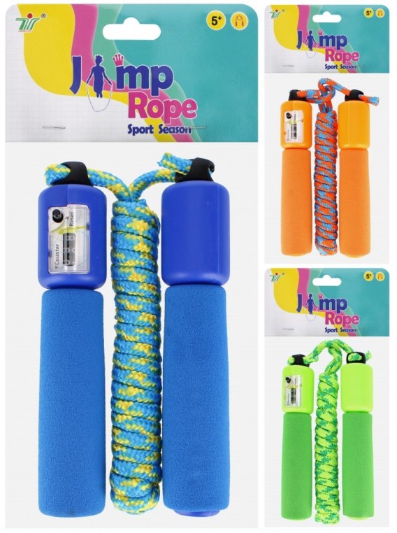 Zalety produktu: sznurkowa skakanka z licznikiem mierzącym ilość skoków, produkt posiada plastikowe uchwyty zabezpieczone pianką co ułatwia ich trzymanie w dłoni, skakanka w kolorze niebieskim, zielonym, pomarańczowym, rozbudza aktywność dziecka, rozwija wyobraźnię, rozbudza aktywność ruchową, wpływa na rozwój psychoruchowy, wyrabia u dziecka samodzielność i wytrwałość przy realizowaniu podjętych zadań, wzmacnia jego motywację, uczy współdziałania w zespole i zachęca do przezwyciężenia trudności. Skakanki to jedno z tych ponadczasowych rozwiązań, które zawsze się sprawdzają w walce o zdrową i szczupłą sylwetkę. Na Skakance MEGA CREATIVE można skakać na wiele różnych sposobów Zawartość zestawu: skakanka z licznikiem. Wymiary/waga/baterie: wymiary produktu dł. cm : 250cm, wymiary opakowania dł. x wys. cm : 13x26x4, waga produktu bez opakowania kg : 0,07 kg, waga produktu w opakowaniu kg : 0,08 kg, nie wymaga zasilania bateriami. Produkt przeznaczony dla dzieci w wieku: 3 . Pakowy w woreczek z zawieszką. W kartonie po 96/192 szt.