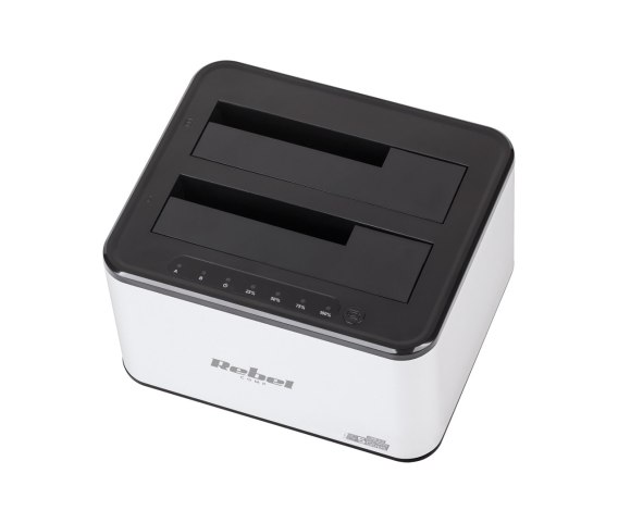 Dzięki stacji dokującej Rebel zarządzanie danymi staje się prostsze i bardziej efektywne niż kiedykolwiek. Stacja dokująca Rebel wyróżnia się prostotą obsługi dzięki funkcji Plug&Play, kompatybilności z wieloma systemami operacyjnymi oraz intuicyjnym przyciskom, w tym funkcji klonowania dysków.