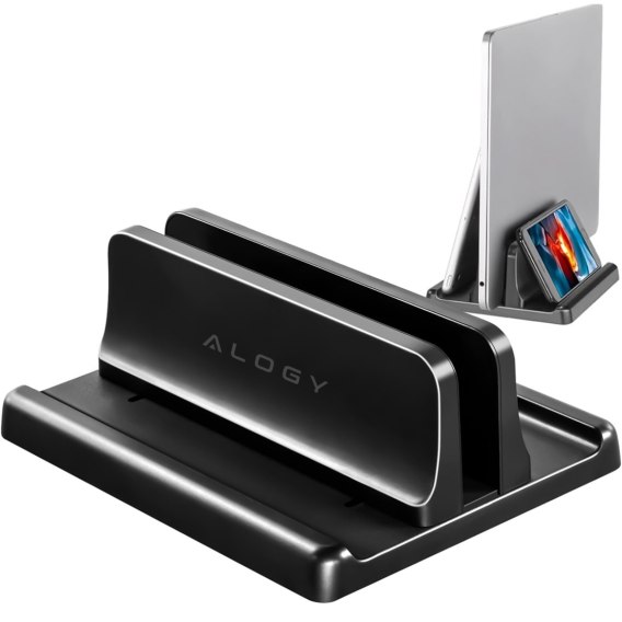 Stojak pionowy 3w1 na laptopa, telefon oraz tablet marki Alogy to praktyczne rozwiązanie wykonane z trwałego tworzywa sztucznego ABS.