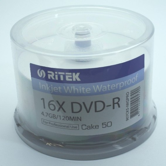 TRAXDATA RITEK DVD-R 4,7GB 16X PRINTABLE GLOSSY INK/THERMAL WATERPROOF CAKE*50 907EXWPDMRTK1