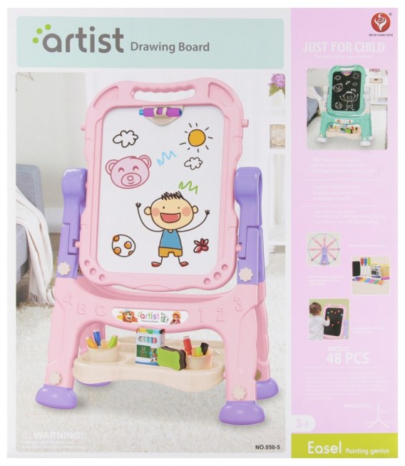 Zalety produktu: Tablica magnetyczna 2w1 stojąca z akcesoriami MEGA CREATIVE. Tablica edukacyjna 2w1 to idealna propozycja dla dzieci, które lubią kreatywną zabawę i naukę. Dwustronna konstrukcja pozwala na korzystanie zarówno z białej tablicy suchościeralnej, magnetycznej, jak i z czarnej tablicy kredowej. Dzięki temu maluch może rysować, pisać, układać magnetyczne literki i cyferki, a przy okazji rozwijać swoje zdolności manualne i wyobraźnię. Cechy produktu: dwustronna tablica: kredowa i magnetyczna suchościeralna, stabilna, stojąca konstrukcja, łatwe czyszczenie powierzchni, wykonana z bezpiecznych i trwałych materiałów, wspiera naukę pisania, liczenia i rysowania, rozwija kreatywność i zdolności manualne, możliwość wspólnej zabawy i nauki z rodzicami. Produkt wykonany z plastiku. Zawartość zestawu: tablica magnetyczna, 1x kpl.pisaków w 5 kolorach, 1op. kolorowej kredy do tablicy etui na kredę, gąbka do tablicy, 1op. magnesów do tablicy. Wymiary/waga/baterie: wymiary produktu dł. x wys. x gł. cm : 58x84x33, waga produktu kg. 2,57kg, wymiary opakowania dł. x wys. x gł. cm : 62x54x13, waga produktu w opakowaniu kg : 3,47kg, nie wymaga zasilania bateriami. Produkt przeznaczony dla dzieci w wieku: 3 . Pakowany w karton. W kartonie zbiorczym po 6szt.