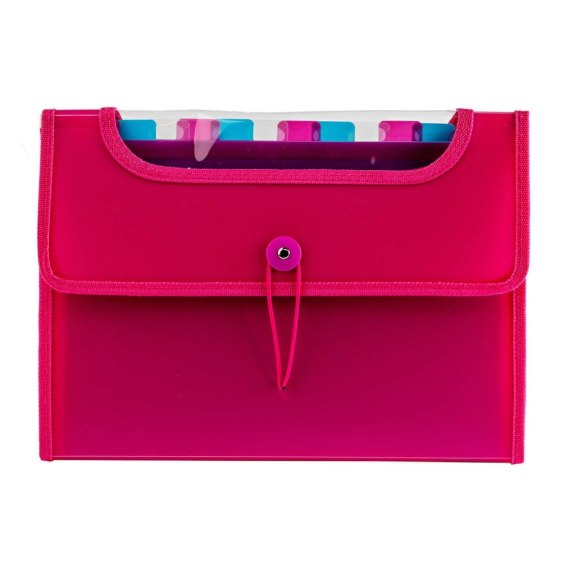 Różowa teczka VFILE STRIGO w formacie A4 posiada 12 kolorowych przekładek z indeksem i miejsce na wsunięcie np.: karteczki z informacją.