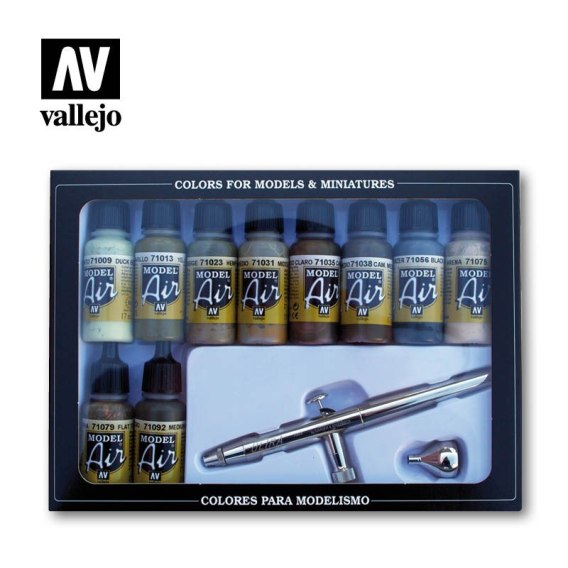 Vallejo 71168 Model Air Set Camouflage Colors & Airbrush (8 x 17 ml)