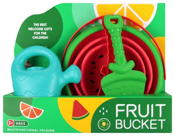 Zalety produktu: Zestaw do piaskownicy plus akcesoria. Zestaw, który sprawdzi się zarówno podczas zabawy w piaskownicy, jak i w kąpieli. Zabawka wykonana jest z miękkiego, giętkiego silikonu oraz plastiku całkowicie bezpieczna dla najmłodszych dzieci. Zestaw posiada kilka elementów, dzięki czemu zabawa nim szybko się nie znudzi. Przyjemna dla oka kolorystyka i ciekawe kształty z pewnością przypadną do gustu każdemu dziecku. Dodatkowo wiaderko jest składane co ułatwia jego przechowywanie oraz przemieszczanie się z nim np. z domu na plac zabaw. Zawartość zestawu: wiaderko, łopatka, grabki, konewka. Wymiary/waga: wymiary produktu -wiaderko rozłożone dł. x wys. x gł. cm : 21x15x21, wymiary opakowania dł. x wys. x gł. cm : 33x26x9, waga produktu kg : 0,26 kg, waga produktu w opakowaniu kg : 0,38 kg. Zestaw przeznaczony dla dzieci w wieku: 3 . Pakowany w kartonik.