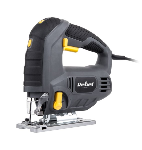 Jak przystało na mocne narzędzie warsztatowe, wyrzynarka Rebel Tools posiada trwałą metalową stopę co w połączeniu z mocną obudową i gumowaną rękojeścią, gwarantuje długą i ergonomiczną pracę przez wiele lat.