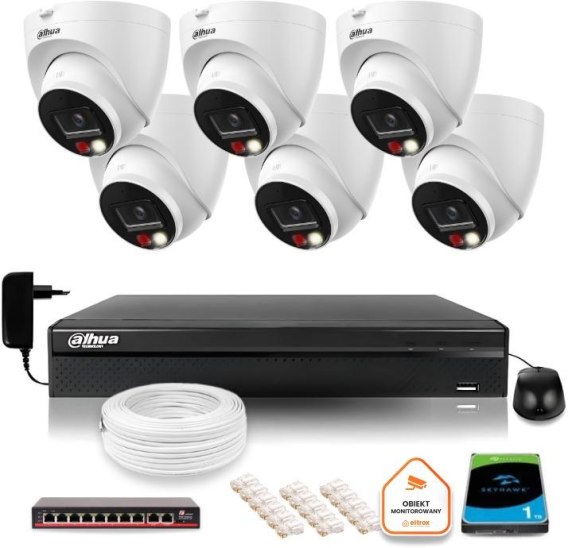 ZESTAW 6 Kamer IP Dahua 8mpx IPC-HDW1839T-A-IL-0280B-S6 + DYSK