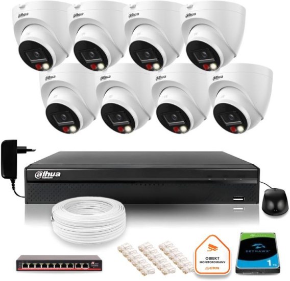 ZESTAW 8 Kamer IP Dahua 8mpx IPC-HDW1839T-A-IL-0280B-S6 + DYSK