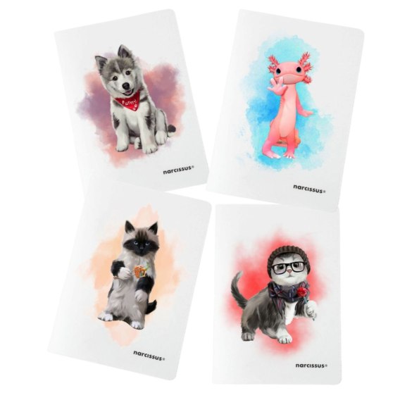 JOY to seria zeszytów szkolnych z okładkami przedstawiającymi słodkie zwierzaki.