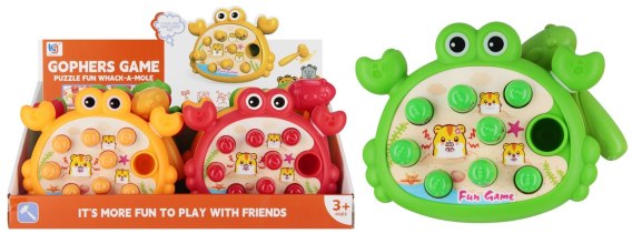 Zalety produktu: Zabawka Młoteczek Krab od MEGA CREATIVE to klasyczna zabawka motoryczna, która doskonale rozwija u malucha koordynację ręka-oko, sprawność manualną, logiczne myślenie i rozpoznawanie kolorów Zabawka polega na uderzaniu młotkiem wystającej kulki która po wbiciu wypycha kolejną w innym miejscu a gracz musi jak najszybciej wbić tą kolejną. Zawartość zestawu: zabawka Krab, młotek do przebijania. Zabawka wykonana z plastiku, występuje w trzech kolorach: zielonym, czerwonym, pomarańczowym. Wymiary/waga/baterie: wymiary produktu dł. x wys. x gł. cm : 22x17x10, wymiary opakowania display A& 39;6 dł. x wys. x gł. cm : 41x18x23, waga produktu bez opakowania kg : 0,18 kg, waga produktu w opakowaniu kg : 1,38 kg, nie wymaga zasilania bateriami. Zabawka przeznaczona dla dzieci w wieku: 3 . Pakowana w display po 6 szt. W kartonie zbiorczym po 96 szt.