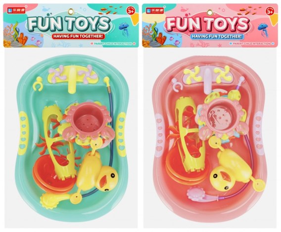 Zalety produktu: Aby codzienna kąpiel nie była tylko nudną czynnością, należy zadbać o ciekawe zajęcie dziecka podczas spędzania czasu w wannie. Najlepszym rozwiązaniem będą bez wątpienia Zabawki do kąpieli od MEGA CREATIVE Zawartość zestawu: 1x wanna z kranem i prysznicem, 1x nakręcana Kaczuszka, 1x młynek do wody, 4x foremki w kształcie zwierzątek. Foremki występują w różnych postaciach i kolorach Zestaw wykonany z plastiku i gumy. Występuje w dwóch wersjach kolorystycznych. Wymiary/waga/baterie: wymiary produktu dł. x wys. x gł. cm -wanna 29x6x19; -Kaczuszka 12x6x8, wymiary opakowania dł. x wys. x gł. cm :26x35x7, waga produktu bez opakowania kg : 0,20 kg, waga produktu w opakowaniu kg : 0,25 kg, nie wymaga zasilania bateriami. Zabawka przeznaczona dla dzieci w wieku: 3 . Pakowana w woreczek z zawieszką. Pakowanie w kartonie po 48/96 szt.