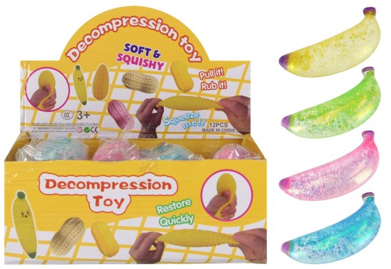 Zalety produktu: można wykorzystać jako gniotek antystresowy, świetnie nadaję się do zabawy oraz jako przyrząd do ćwiczenia dłoni. MEGA CREATIVE znów wychodzi naprzeciw naszym oczekiwaniom i przedstawia pomysł na odstresowanie i zabawę w jednym. Gniotek antystresowy nie tylko będzie pomocny w nauce radzenia sobie ze stresem ale także świetnie nada się do zabawy oraz jako przyrząd do ćwiczenia dłoni. Gniotek w kształcie banana ma tylko 13 cm a tak dużo możliwość Gniotek występuje w czterech wersjach kolorystycznych. Zawartość zestawu: gniotek banan. Wymiary/waga/baterie: wymiary produktu cm : 13 cm, wymiary opakowania DISPLAY dł. x wys. x gł. cm : 22x9x16, waga produktu bez opakowania kg : 0,15 kg, waga produktu w opakowaniu DISPLAY kg : 1,90 kg, nie wymaga zasilania bateriami. Zabawka przeznaczona dla dzieci w wieku: 3 . Pakowana w display po 12 szt. W kartonie po 288 szt.