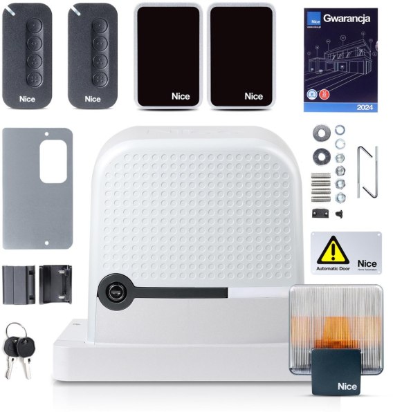 • Uwagi do gwarancji: Samodzielna instalacja produktu Nice = rezygnacja z gwarancji. Aby obowiązywała gwarancja na 3 lata, montaż musi wykonać certyfikowany instalator Nice, który dokona przeglądu między 10, a 12 miesiącem od montażu. Brak przeglądu = rok gwarancji producenta.