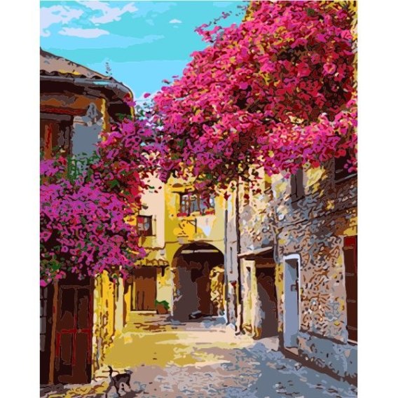 Zestaw kreatywny Malowanie po numerach 40x50cm Uliczka z kwitnącymi drzewami FLAMINGO LINE