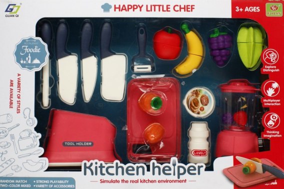 Zalety produktu: rozwija zdolności poznawcze, kreatywność dziecka. Twoje dziecko najlepiej uczy się poprzez zabawę. Zachęcając je do niej, przyczyniasz się do rozwoju jego kreatywności, zmysłów i zdolności poznawczych. Zestaw MEGA CREATIVE AGD będzie doskonałym uzupełnieniem każdej dziecięcej kuchni Zawartość zestawu: blender, deska do krojenia, 3x nóż, ostrzałka do noży, obieraczka do warzyw, warzywa i owoce tj.: banan, sałata zielona, marchewka, winogrono, pomidor, butelka z przyprawą, masło w kubeczku. Całość wykonana z plastiku. Wymiary/waga/baterie: wymiary produktu dł. x wys. x gł. cm : blender 9x13x8, wymiar opakowania dł. x wys. x gł. cm : 47x31x9, waga produktu bez opakowania kg : 0,28 kg, waga produktu w opakowaniu kg : 0,53 kg, nie wymaga zasilania bateriami. Produkt przeznaczony dla dzieci w wieku: 3 . Pakowany w kartonik z okienkiem. W kartonie po 18 szt.