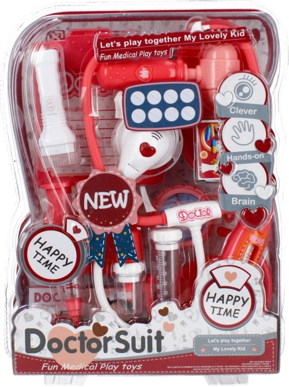 Zalety produktu: rozwijanie wyobraźni dziecka, nauka opieki nad chorym. MEGA CREATIVE przedstawia Zestaw Lekarski ze wszystkimi niezbędnymi przyrządami lekarskimi. Z tym zestawem, wszyscy pacjenci zostaną wyleczeni Zawartość zestawu m. innymi: stetoskop, karta pacjenta, strzykawka, termometr, latarka lekarska, tabletki, ciśnieniomierz, młoteczek, nerka na narzędzia.. . Całość wykonana z plastiku. Wszystkie produkty są imitacją prawdziwych Stetoskop posiada efekty świetlne i dzwiękowe-odwzierciedla prawdziwe bicie serca Wymiary/waga/baterie: wymiary produktu dł. x szer. cm : -stetoskop- 49x14,- termometr 13x2, wymiary opakowania dł. x wys. x gł. cm : 26x33x9, waga produktu bez opakowania kg : 0,29 kg, waga produktu w opakowaniu kg : 0,42 kg, nie wymaga zasilania bateriami. Zestaw przeznaczony dla dzieci w wieku: 3 . Pakowany na blistrze. W kartonie zbiorczym po 36 szt.