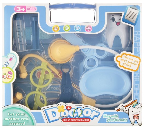 Zalety produktu: rozwijanie wyobraźni dziecka, nauka opieki nad chorym. MEGA CREATIVE przedstawia Zestaw Lekarski ze wszystkimi niezbędnymi przyrządami lekarskimi. Z tym zestawem, wszyscy pacjenci zostaną wyleczeni Zawartość zestawu: stetoskop, okulary, strzykawka, 2 x nożyczki, termometr, plaster, skalpel, lusterko laryngologiczne, karta pacjenta. Całość wykonana z plastiku. Wszystkie produkty są imitacją prawdziwych Wymiary/waga/baterie: wymiary produktu dł. x szer. cm : stetoskop- 48x13, walizka dł. x wys. x gł. cm : 27x24x27, wymiary opakowania dł. x wys. x gł. cm : 27x24x8, waga produktu bez opakowania kg : 0,39 kg, waga produktu w opakowaniu kg : 0,47 kg, nie wymaga zasilania bateriami. Zestaw przeznaczony dla dzieci w wieku: 3 . Pakowany w karton z otwartym okienkiem. W kartonie zbiorczym po 30 szt.