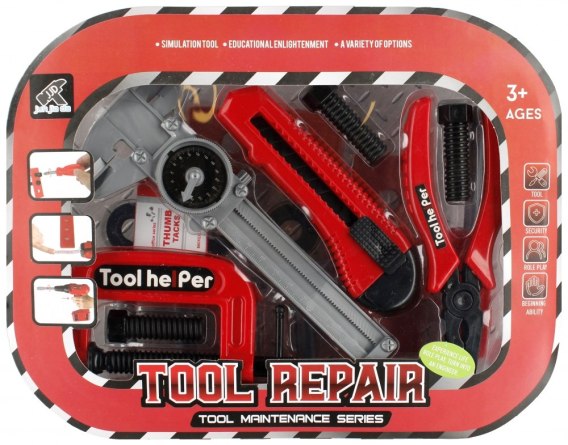 Zalety produktu: rozwija kreatywność dziecka, dziecko poznaje podstawowe narzędzia warsztatowe. Zestaw narzędzi MEGA CREATIVE to podstawowy element wyposażenia małego majsterkowicza. Dzięki niemu każde dziecko nauczy się jak przykręcać śrubki czy poprawnie używać wiertarki Zawartość zestawu: pinezki tapicerskie, 2x deseczka, 7x śrubka, 4x nakładka na śrubki, śrubokręt, imadło, nóź tapicerski, kombinerki, klucz francuski. Całość wykonana z plastiku. Wymiary/waga/baterie: wymiary produktu dł. x wys. x gł. cm -klucz francuski 21x8x2,-imadło 14x7x2, wymiar opakowania dł. x wys. x gł. cm : 31x24x8, waga produktu bez opakowania kg : 0,23 kg, waga produktu w opakowaniu kg : 0,32 kg, nie wymaga zasilania bateriami. Produkt przeznaczony dla dzieci w wieku: 3 . Pakowany w plastikowym przezroczystym etui w kształcie walizki. Pakowanie w kartonie 24/48 szt.