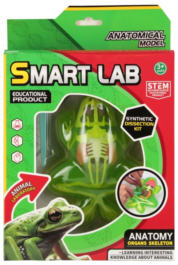 Zalety produktu: Zestaw naukowca Anatomia Żaba MEGA CREATIVE to fascynująca pomoc edukacyjna, która pozwala dzieciom i młodzieży w bezpieczny i ciekawy sposób odkrywać tajemnice budowy ciała żaby. To idealne połączenie nauki i zabawy zamiast prawdziwego preparatu, zestaw zawiera realistyczny model do samodzielnego składania i eksploracji. Cechy produktu: rozwija ciekawość świata i zainteresowanie biologią, pozwala zrozumieć działanie układu kostnego i narządów wewnętrznych, wspiera naukę przez praktyczne doświadczenie, idealny do wykorzystania w domu, szkole lub jako prezent dla młodych odkrywców. Dzięki zestawowi dziecko może przeprowadzić sekcję żaby w sposób bezpieczny i przyjazny, ucząc się anatomii poprzez zabawę i praktykę. Zawartość zestawu: 1x realistyczny model żaby z wyjmowanymi organami, instrukcja co oznacza konkretny narząd żaby, pęseta. Wszystkie akcesoria wykonane z plastiku i masy żelowej i są imitacja prawdziwych. Wymiary/waga/ baterie: wymiary produktu dł. x wys. x gł. cm 17x4x13, waga produktu kg. 0,29 kg. Wymiary opakowania dł. x wys. x gł. cm 20x30x5 ,waga produktu w opakowaniu kg. 0,39 kg. Nie wymaga zasilania bateriami. Pakowany w kartonik z okienkiem, Przeznaczony dla dzieci w wieku 3 . Pakowanie w kartonie po 24/48szt.