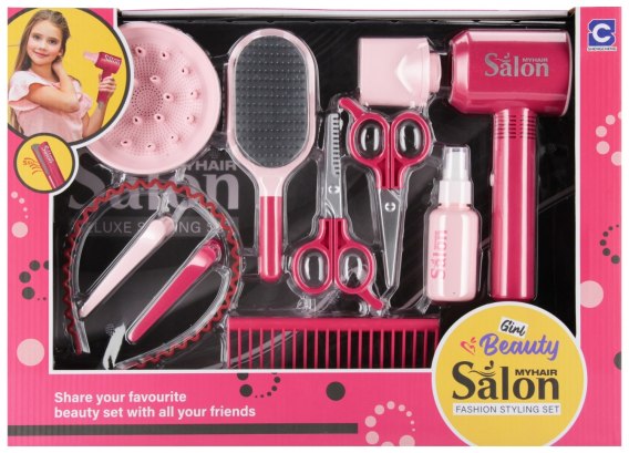 Zalety produktu: Zestaw piękności Fryzjer MEGA CREATIVE Zestaw Fryzjer to fantastyczna zabawka dla małych stylistów i stylistek Dzięki niemu dzieci mogą bawić się w strzyżenie, czesanie i stylizowanie włosów, rozwijając kreatywność oraz zdolności manualne. Cechy produktu: realistyczne akcesoria tj. nożyczki, grzebienie, suszarka i inne elementy do stylizacji włosów. Bezpieczna zabawa, wszystkie elementy wykonane z nietoksycznego plastiku, Rozwój kreatywności i wyobraźni, zabawa dla dzieci, idealny dla małych fryzjerów od 3 roku życia, sprawdzi się także podczas wspólnych zabaw z rodzeństwem i przyjaciółmi uczy planowania, precyzji i wyrażania siebie. Zestaw Fryzjer to doskonały pomysł na prezent, który zapewni godziny kreatywnej zabawy i pozwoli maluchom poczuć się jak prawdziwy stylistka Zawartość zestawu: suszarka, dyfuzor,. szczotka do włosów, 2x nożyczki, 2x spinka do włosów, 1x opaska do włosów, 1x grzebień, 1x spray do modelowania włosów. Całość wykonana z plastiku. Wymiary/waga/baterie: wymiary produktu dł. x wys. x gł. cm -suszarka 8x22x6, waga produktu bez opakowania kg : 0,36 kg, wymiary opakowania dł. x wys. x gł. cm : 43x31x7, waga produktu w opakowaniu kg : 0,61 kg, wymaga zasilania bateriami- suszarka 3x AAALR3- nie załączonymi do zestawu . Zestaw przeznaczony dla dzieci w wieku: 3 . Pakowana w kartonik z okienkiem. W kartonie zbiorczym po 8 szt.