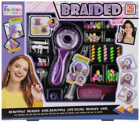 Zalety produktu: rozwija kreatywność dziecka, pobudza wyobraźnię. Zestaw piękności MEGA CREATIVE doskonale nadający się do stylizacji włosów i tworzenia fantazyjnych fryzur, spraw radość dziecku. Aby poprawić umiejętności praktyczne dla ułatwienia w zestawie dołączona jest poza koralikami i nićmi kolorowymi które możesz wpleść we włosy, maszynka do zaplatania ozdób. Zawartość zestawu: maszynka do zaplatania włosów, grzebień, koraliki do nawlekania mix kolorów i wzorów, nici kolorowe do włosów, gumki do włosów mix kolorów oraz inne akcesoria do włosów. Zestaw wykonany z plastiku, nici, gumki. Wymiary/waga/baterie: wymiary produktu szer. x wys. cm :-maszynka 8x18, wymiary opakowania dł. x wys. x gł. cm : 38x33x8, waga produktu bez opakowania kg : 0,37 kg, waga produktu w opakowaniu kg: 0,48 kg, wymaga zasilania bateriami 2x AAALR03 1,5V-nie załączonymi do zestawu. Produkt przeznaczony dla dzieci w wieku 6 . W kartonie po 18/36 szt.