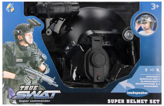 Zalety produktu: uczy odróżniania dobra od zła, uczy zasad gry fair-play, rozwija wyobraźnię poprzez wymyślanie różnych scenariuszy podczas zabawy. Policjant to najczęściej wymieniany zawód, który w przyszłości chciałyby sprawować dzieci. Pozwól by Twoja pociecha już teraz mogła przygotować się do pracy w wymarzonym zawodzie. Aby móc bezpiecznie działać każdemu policjantowi potrzebny jest hełm ochronny. MEGA CREATIVE stworzył hełm wraz z wbudowanym głośnikiem do komunikowania się oraz lornetką. Zawartość zestawu: hełm z lornetką, latarka, gogle. Produkty wykonane z plastiku. Wymiary/waga/baterie: wymiary produktu dł. x wys. x gł. cm : 26x20x22, wymiary opakowania dł. x wys. x gł. cm : 36x24x26, waga produktu bez opakowania kg : 0,38 kg, waga produktu w opakowaniu kg : 0,84 kg, wymaga zasilania bateriami 3xAG13- załączono do zestawu oraz 2x AALR06- nie załączono do zestawu. Zestaw przeznaczony dla dzieci w wieku: 3 . Pakowany w karton z okienkiem. W kartonie zbiorczym po 12 szt.