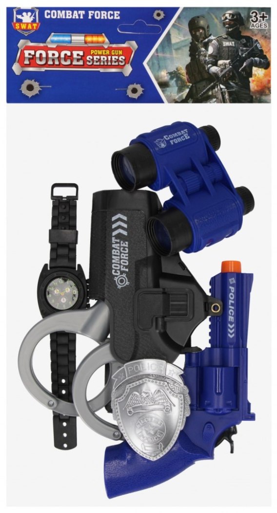 Zalety produktu: Zestaw policyjny MEGA CREATIVE. Zabawa w małego stróża prawa staje się ekscytująca dzięki zestawowi policyjnemu W skład zestawu wchodzą akcesoria, które pozwalają dzieciom odgrywać różne scenariusze policyjne od kontroli ruchu drogowego po akcje ratunkowe. Zestaw rozwija wyobraźnię, kreatywność oraz zdolności manualne, a wykonanie z bezpiecznych materiałów gwarantuje komfort i bezpieczeństwo podczas zabawy. Produkt wykonany z plastiku. Zawartość zestawu: pistolet, kajdanki, lornetka, odznaka, zegarek. Wymiary/waga/ baterie: wymiary produktu dł. x wys. x gł. cm -pistolet 19x12x3, wymiary opakowania dł. x wys. x gł. cm 19x31x3, waga produktu kg. 0,13kg, waga produktu w opakowaniu kg. 0,15 kg. Nie wymaga zasilania bateriami. Produkt przeznaczony dla dzieci w wieku 3 . Pakowany w folię z zawieszką. W kartonie 96/192 szt.
