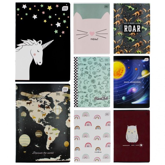 Format: A5. Liczba kartek: 16. Zadruk w kratkę. Zaokrąglone rogi. Okładka pokryta lakierem UV. Przydatne pomoce dydaktyczne na odwrocie zeszytu: ściąga z języka angielskiego i tabliczka mnożenia.
