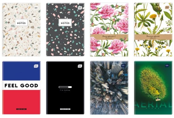 Zeszyt A5 96 kartek gładki twarda oprawa mix wzorów INTERDRUK