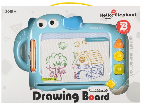 Zalety produktu: Znikopis magnetyczny Słonik MEGA CREATIVE. Kolorowy znikopis magnetyczny to świetna zabawka, która rozwija kreatywność, wyobraźnię i zdolności manualne dziecka Dzięki dołączonemu magnetycznemu rysikowi można tworzyć rysunki i napisy, a suwakiem z łatwością wszystko zmazać i zacząć od nowa. Lekki, poręczny. Idealny do zabawy w domu, podróży czy przedszkolu. Idealny pomysł na edukacyjną i kreatywną zabawkę dla dziecka, którą można zabrać wszędzie Produkt wykonany z plastiku. Zawartość zestawu: znikopis, 3x stempel. Wymiary/waga/baterie: wymiary produktu dł. x wys. x gł. cm : 29x4x11, wymiar opakowania dł. x wys. x gł. cm : 35x25x4, waga produktu bez opakowania kg : 0,27 kg, waga produktu w opakowaniu kg : 0,29 kg, Nie wymaga zasilania bateriami. Zabawka przeznaczona dla dzieci w wieku: 3 . Pakowany w kartonik z okienkiem .Pakowanie w kartonie po 48szt