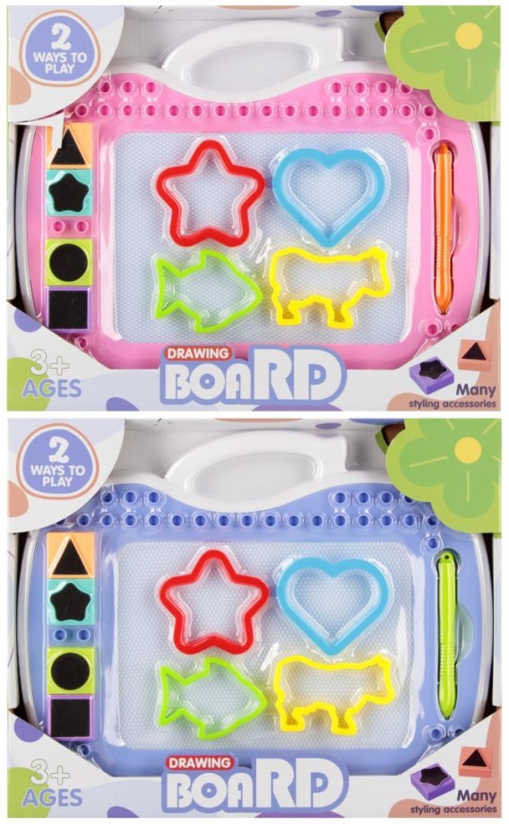 Zalety produktu: w zależności w której jego części powstanie rysunek, będzie on w jednym z czterech kolorów, rozwija kreatywność dziecka, pobudza wyobraźnię. Kolorowy Znikopis to najlepszy pomysł na naukę rysowania Twojego dziecka. Nie musisz się przejmować czy linia będzie prosta czy krzywa, jeżeli coś nie wyjdzie, łatwo zmażesz to jednym ruchem. Ten Znikopis posiada specjalną powłokę Znikopis MEGA CREATIVE z akcesoriami to być może powierzchnia, na której powstanie pierwsze dzieło sztuki Twojej pociechy Zawartość zestawu: znikopis magnetyczny, długopis, 4x foremki oraz 4x pieczątki. Występuje w dwóch kolorach: różowym, fioletowym. Wymiary/waga/baterie: wymiary produktu dł. x wys. x gł. cm :33x4x26, wymiary opakowania dł. x wys. x gł. cm : 34z4x28, waga produktu bez opakowania kg : 0,29 kg, waga produktu w opakowaniu kg : 0,39 kg, nie wymaga zasilania bateriami. Zabawka przeznaczona dla dzieci w wieku: 3 . Znikopis pakowany w kartonik z okienkiem. W kartonie zbiorczym po 30/60 szt.